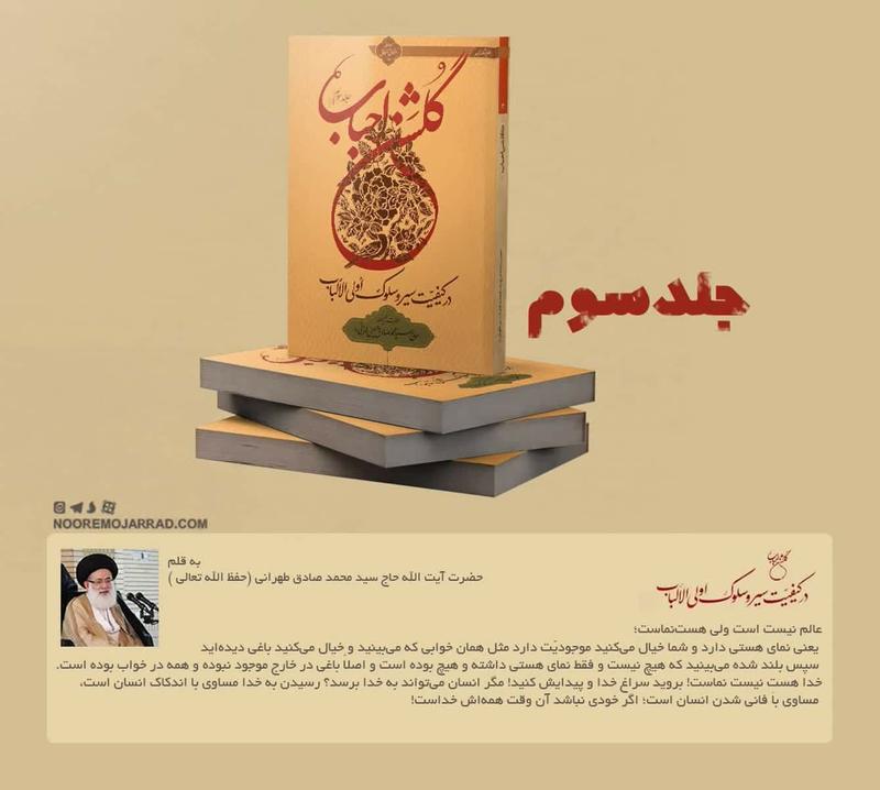جلد سوم کتاب «گلشن احباب؛ در کیفیت سیر و سلوک اولی الالباب» تألیف حضرت آیةالله حاج سیّدمحمّدصادق حسینی طهرانی مدّظلّه العالی منتشر شد.
